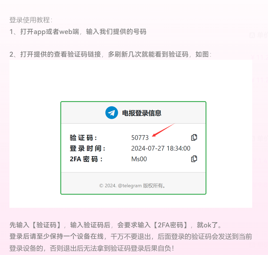 Telegram账号发货格式